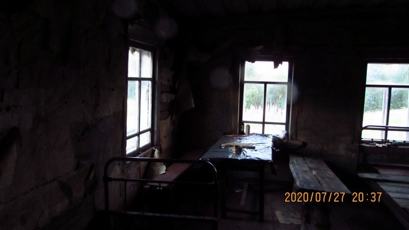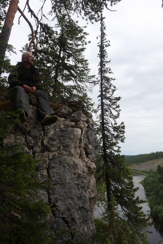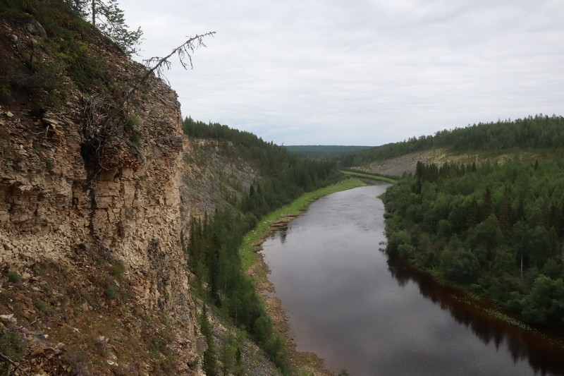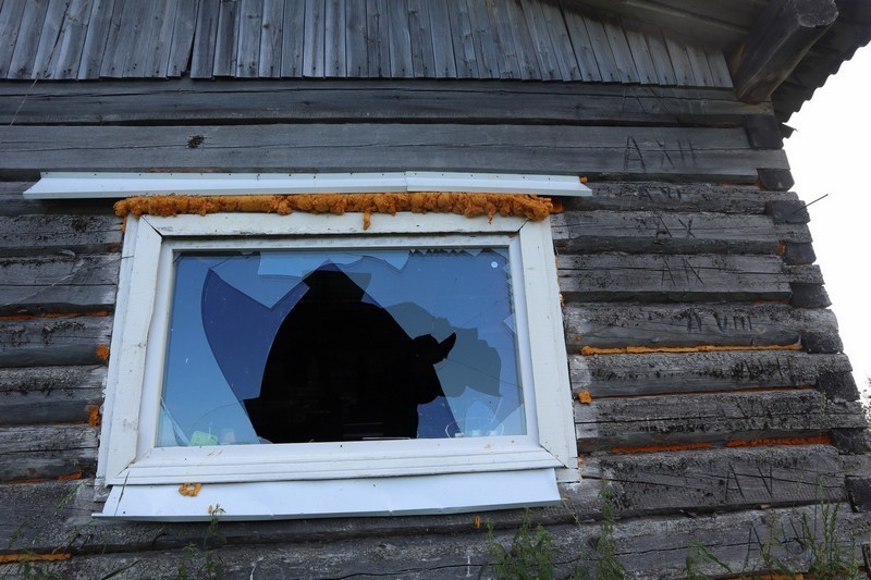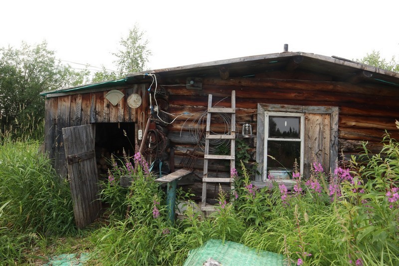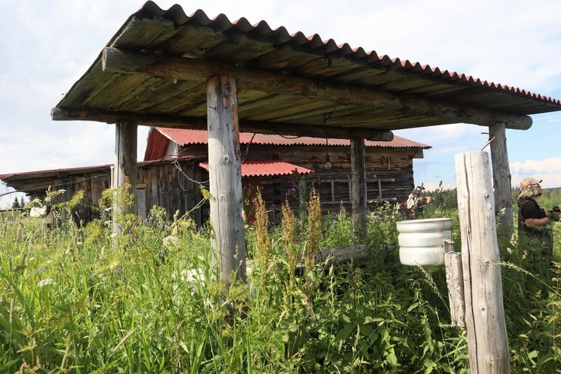 Надеялись мы тут повстречать геологов, расспросить их с пристрастием, но не судьба. Они тут были, но ушли куда-то, видимо на дальний кордон. Пока ждали ребят на лодке (они пошли сюда водным путём), изучили поселок. Это даже не поселок, а целый город, с улицами. Но все поросло кустами, крыши домушек провалились и только размеры свидетельствуют о прошлом масштабе. Что удивительно, база явно не в спешке брошена. С нее увезено все, совсем все. С домов даже снята обшивка внутренняя. Обычно в брошенных домах остается не нужный хлам, какая-то утварь, не забранная хозяевами и не утащенная мародерами. Здесь же нет ничего, вообще ничего. Только голые стены. А вот в жилом домике наоборот уютно. Он явно посещается и оставлен постояльцами совсем недавно. Изучив окрестности, уселись на берегу Цильмы ждать ребят на лодке. Максим тем временем ловит и отпускает рыбу. Клюет не крупная щука и мелкий хариус. Цильма больше Ашуги (на которой стоит Борковская), но вот вода здесь какая-то мутная, хоть и течение присутствует.