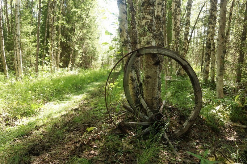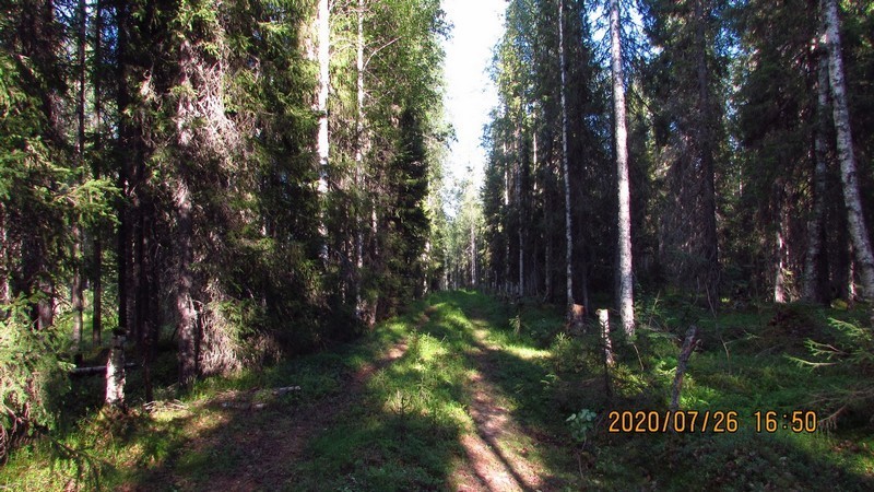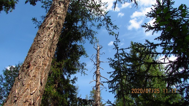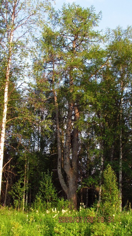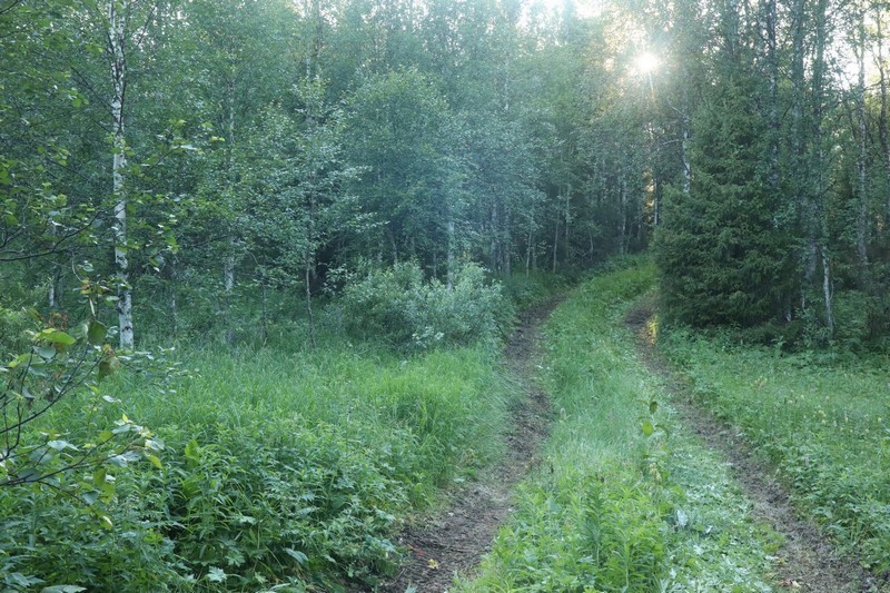 Обратная дорога всегда легче, особенно когда не блуждаешь. Иду и рассматриваю лес. Среди березок и елей изюминками, вставлены здоровенные лиственницы. Сам лес чистый, почти без подлеска. И опять удивляюсь, что нет здесь старых завалов из упавших деревьев. Надо сказать, что вообще по тракту почти нет поваленных стволов. Раз в год кто-то проезжает, что упадет – уберут. Еще частенько встречаются большие пеньки от спиленных давным-давно лиственниц. Видимо вдоль дороги деловой лес пилили.