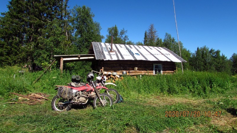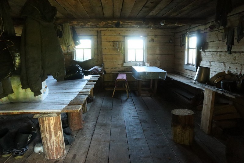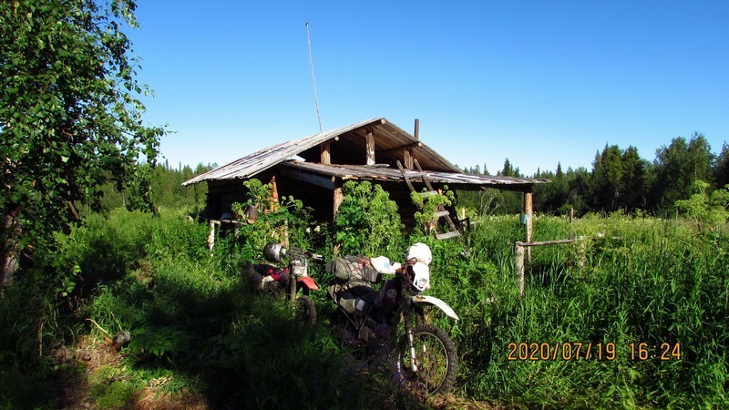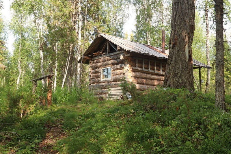 Под конец немножко поплутали, но на место вышли. А там, на берегу, изба стоит. Довольно свежая и уютная. А вот дорога, что сюда подходит, очень уж старая и неезженая. Такое ощущение, что в последнее время лишь ГТС ходил сюда, года три назад и то один раз, материал для строительства завозил. По его следу мы как раз и шли.