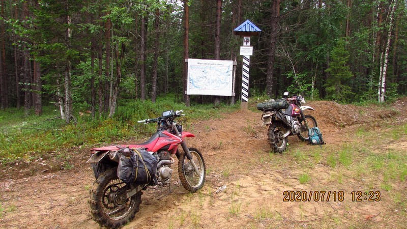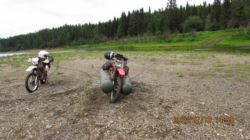 «Не имей 100 рублей, а имей 100 друзей» – это сейчас про нас. Не успели попрощаться с Кириллом в Сыктывкаре, как вновь ему звоню. А причина очень необычна: пошло масло из-под головки моего мотоцикла. Что делать? Снимать головку, красить прокладку и собирать опять. Тянем В Ухту, там нас встречают местные мотоциклисты, в гараже у Ильи блиц разборка и сборка двигателя. За 3 часа управились. Прокладка оказалась нормальной, но вот болт один не держит. Ну это не беда, чуть поменьше крутить мотор, и следить за маслом – а в остальном ехать можно. Вот и поехали. Ребята подсказали хорошее место для ночевки, но до него 20 км по темноте при чисто номинальном свете чисто номинальных фар. Вот уж не думала, что светофоры в городе так ослепляюще-ярко светят! Встали на ночевку на берегу старого песчаного карьера. Ветрено, но тепло. Только палатку поставили и спрятаться успели – как разразилась гроза. Даже не гроза, грозища с водопадными потоками воды. Хорошее испытание для новой палатки. Надо отдать должное, она его выдержала и выдержала на отлично. Ночью небесная канцелярия выдала вторую серию грозы. Дождь опять потоками мчал по тенту палатки, но она стойко выдержала и второй заход. Утро. Холодно, но сухо. Как же нудно тянутся асфальтовые километры! Боюсь за мотор, но он вполне нормально работает. После переборки проблема не ушла, но стала меньше. Уже не течет, а скорее потеет из-под прокладки. Надо сказать, что дорога практически пустая и с вполне хорошим покрытием. Единственный кусок без асфальта – так и тот в процессе строительства. Отсыпано какой-то странной щебенкой, от которой все ниже колен стало белым. Вероятно, посуху тут пыль страшная стоит. Ижма. Большое село и, вероятно, интересное. Но, к сожалению, нет времени познакомиться с ним поближе. До первого парома, у которого назначена встреча, еще 50 км мокрого грейдера. Поэтому только заправка, докупка антикомариных репеллентов, и двигаем дальше. После Ижмы дорога стала намного красивее. Она идет вдоль реки Ижма, кругом теперь прозрачные беломошники, вот только оленей не хватает. А ведь когда-то их разводили тут в большом количестве. Паромная переправа через Печору. Паром регулярный, ходит часто. Первый рейс в 6-15, на нем завтра должны пересечь реку. А пока нашли красивое и максимально обдуваемое место, встали лагерем. Надо сказать, что вода в Печоре на удивление теплая, хоть купаться иди.