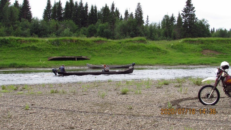 Встреча с ребятами, разговоры до полуночи, ранний подъем и на паром. На первый рейс не попали, надо было раньше очередь занимать. Но второй рейс нас забрал и вот мы уже на другом берегу Печоры. Широка река, величественна. Домчали до Усть-Цыльмы. Тут последняя перед трактом заправка. Нам не надо, у нас полные баки. Надо сказать, что 92й бензин, который залили в Ижме, оказался отвратным. Мотор гремел, звенел и просил чего-нибудь повкуснее залить в бак. Перед паромом разбавили содержимое бака из запасных бутылок и стало получше. В этих краях можно только 95м заправляться. В Усть-Цыльме пока ждали ребят, разговорились с местным дядькой. Много интересного рассказал про края здешние. Но на вопрос «а вот, к примеру, поедешь в Питер жить?» однозначно отрезал: «Не, зачем мне Питер, я вот тут сейчас на заимку свою поеду, там и ягоды и грибы… Не, не надо мне в Питер».